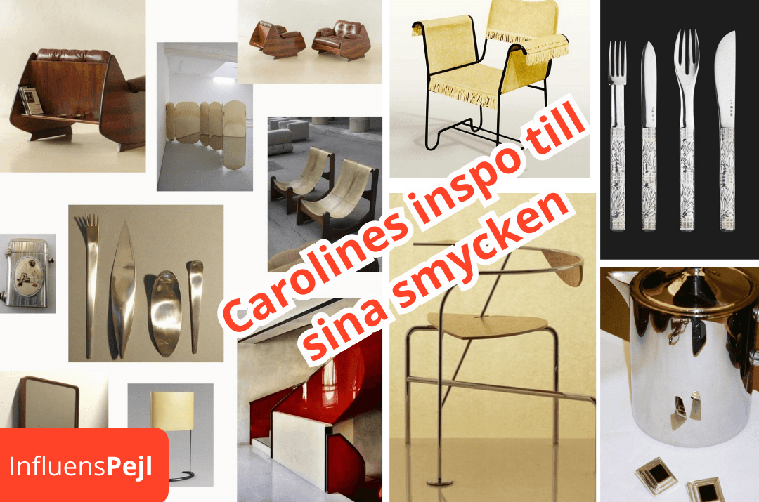 Caroline har från start lyft att hon inspireras av designklassiker: lampor, stolar, klockor och möbler.
